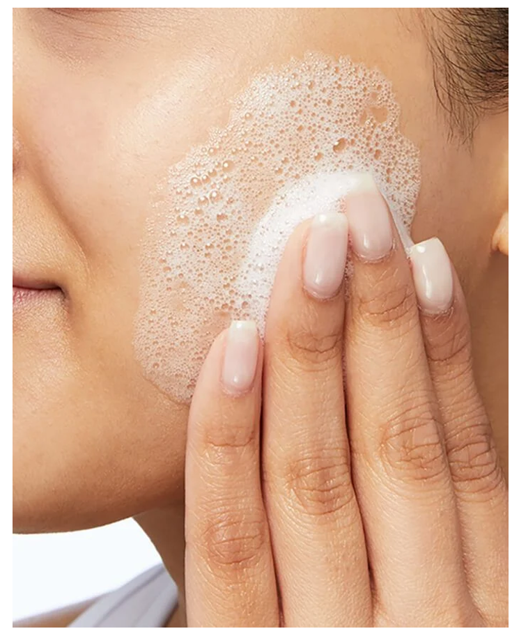 - Apply a small amount of Cerave Foaming Cleanser to your hands and work into a lather.