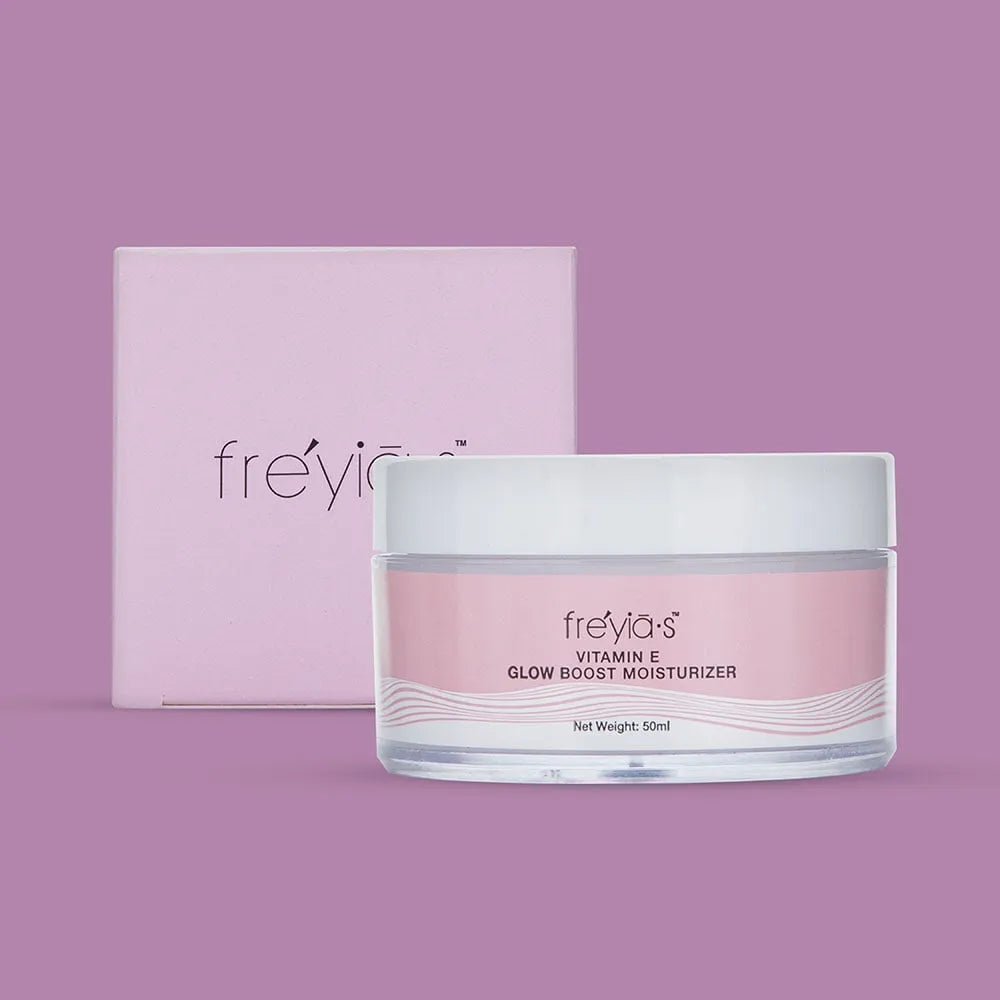 Freyias Vitamin E Glow Boost Moisturizer is a lightweight, nourishing cream designed to hydrate and brighten your skin while promoting a healthy, radiant glow.