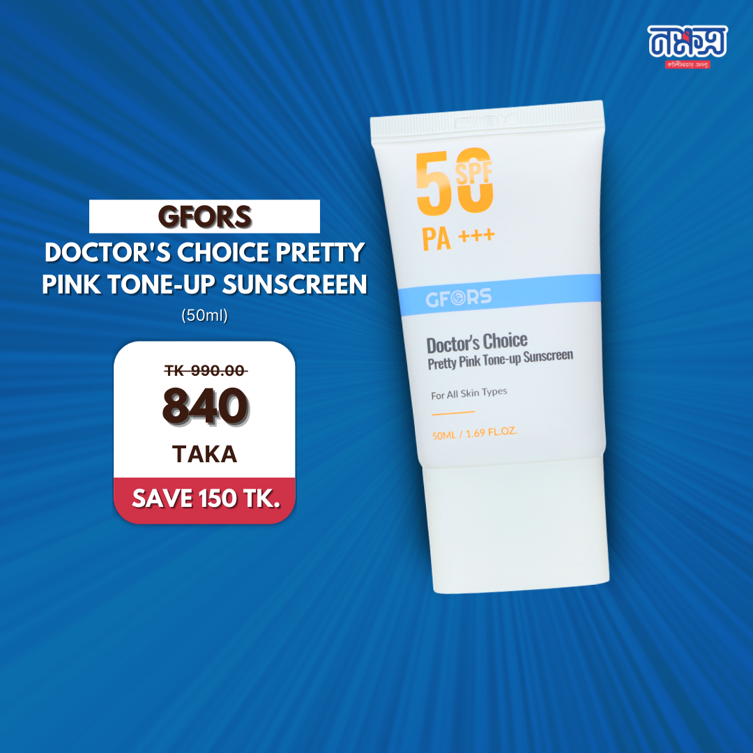 GFORS Doctor's Choice Pretty Pink Tone-up Sunscreen (50ml) is a sunscreen that offers broad-spectrum protection while giving your skin a soft pinkish glow. It helps protect against UV rays and adds a healthy, radiant finish to your face.