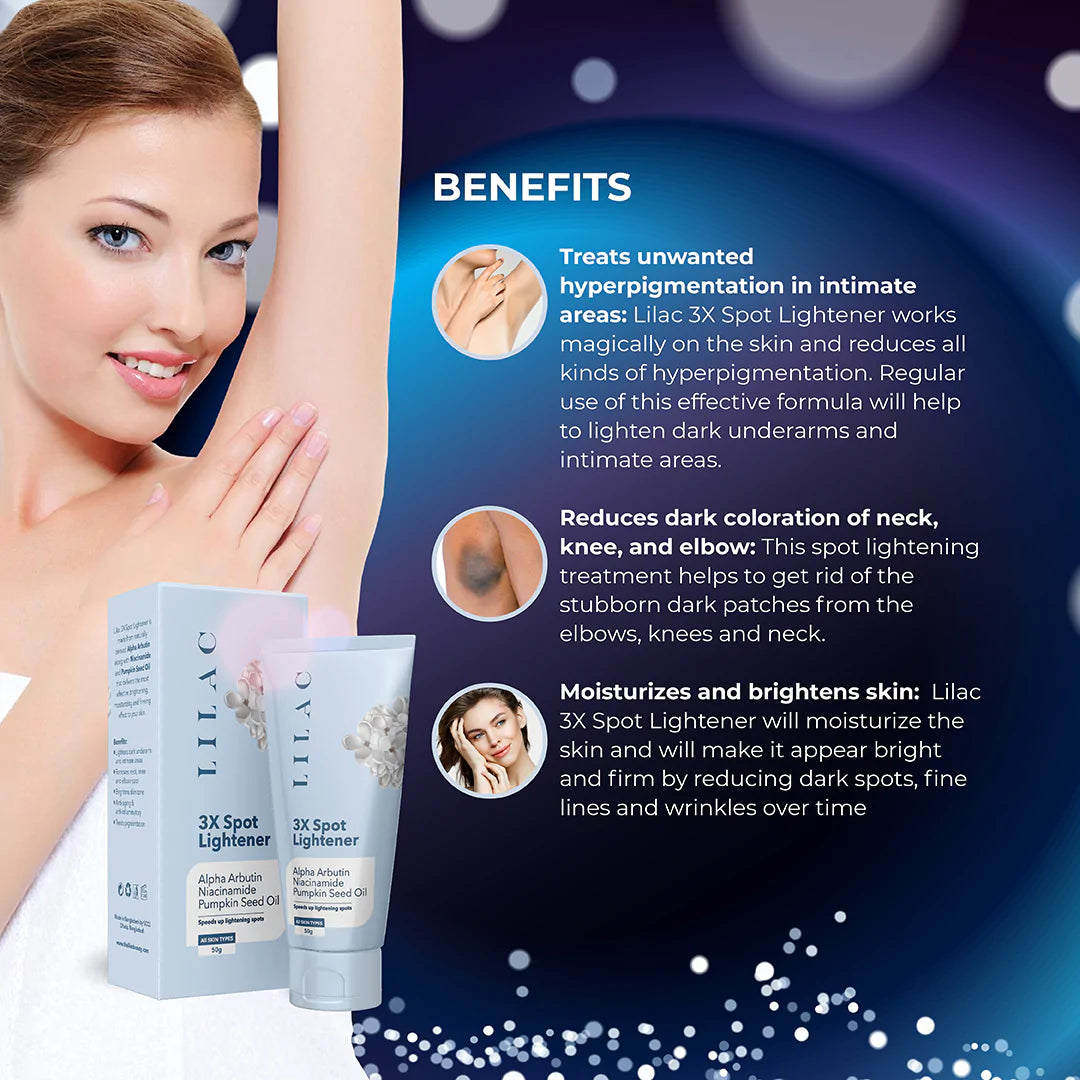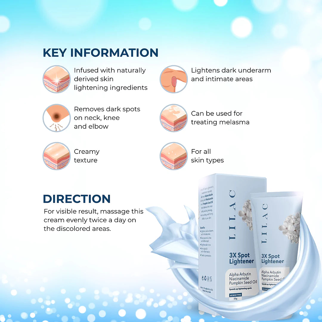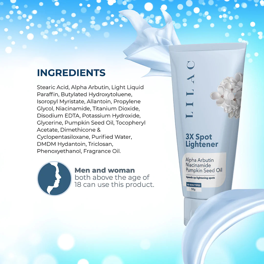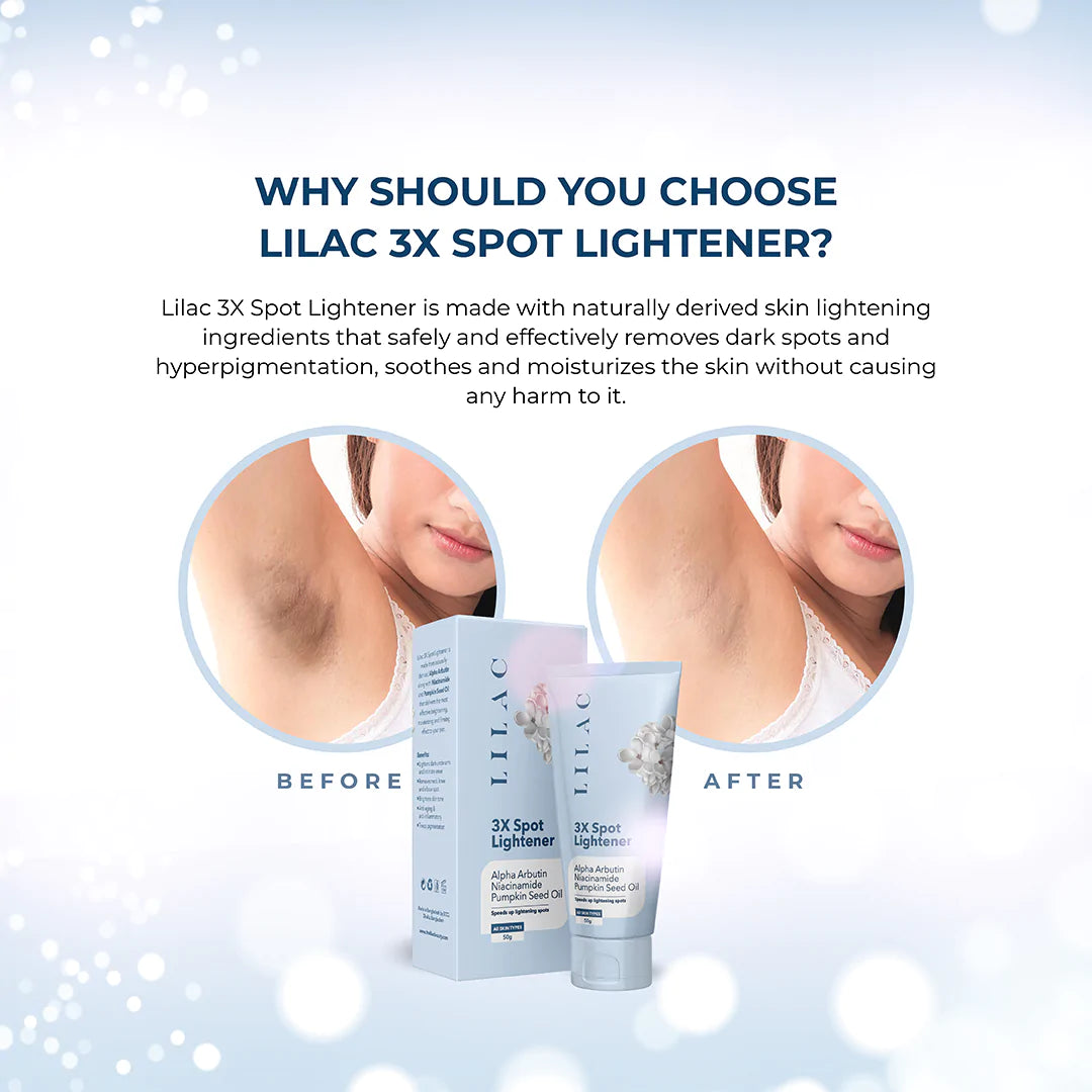 What sets Lilac 3X Spot Lightener apart is its triple-action formula, combining advanced brightening agents with soothing ingredients to provide effective results without irritation. It works gently on the skin while offering noticeable improvements in clarity and brightness.