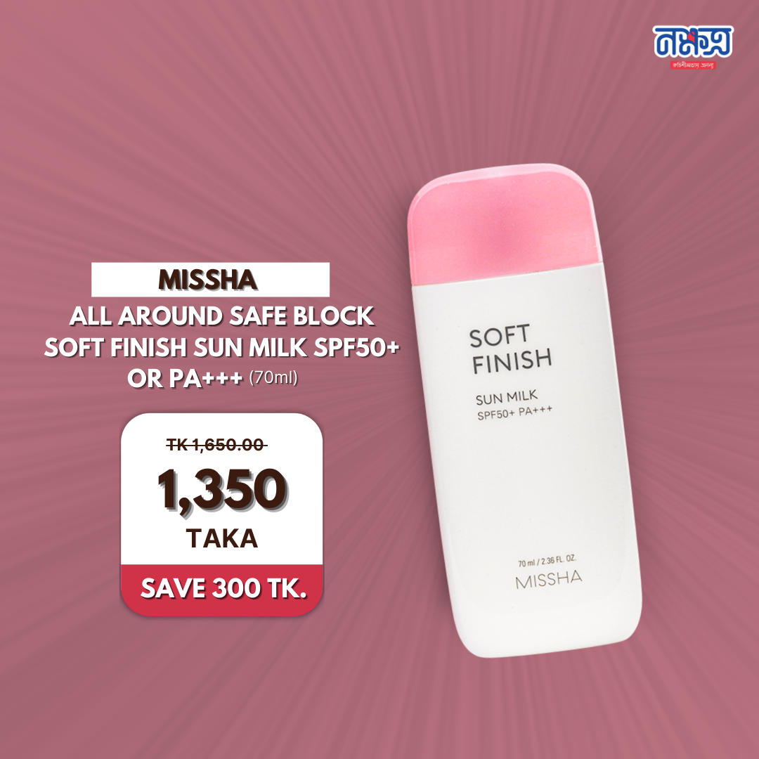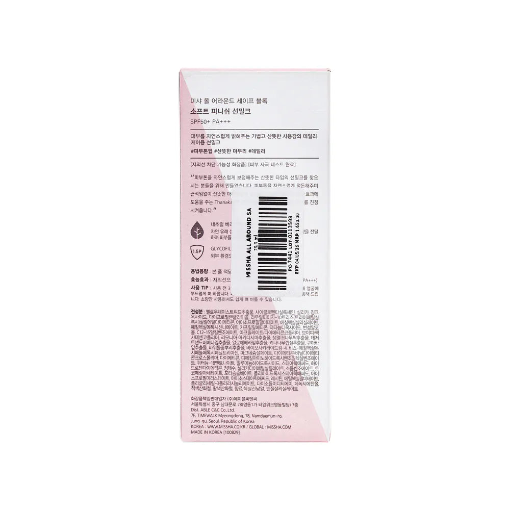 Missha All Around Safe Block Soft Finish Sun Milk SPF50+ PA+++ is a lightweight sunscreen that provides high protection from harmful UV rays. Its soft finish leaves the skin smooth and hydrated, making it perfect for daily use.