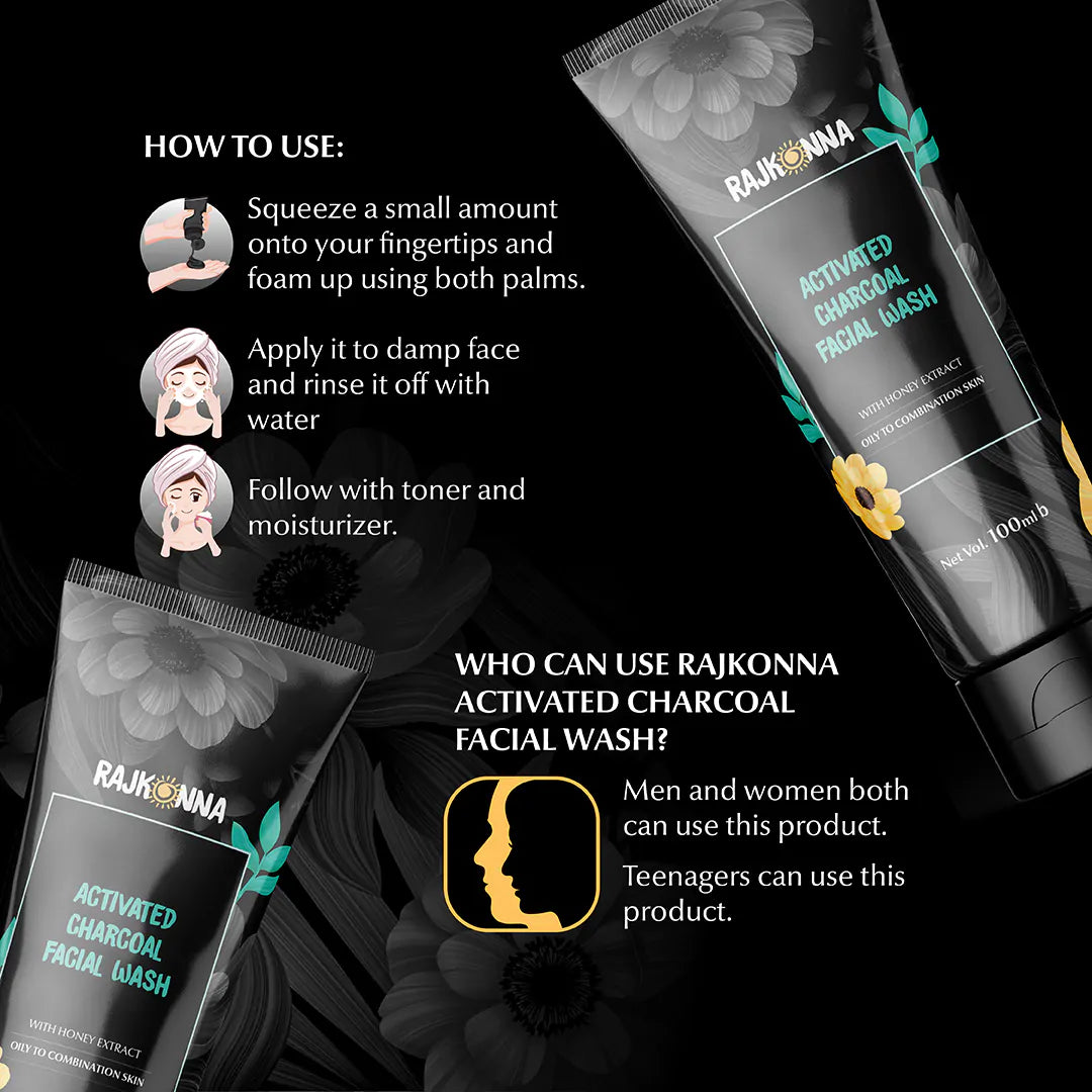 Rajkonna Activated Charcoal Facial Wash With Honey Extract (100ml)