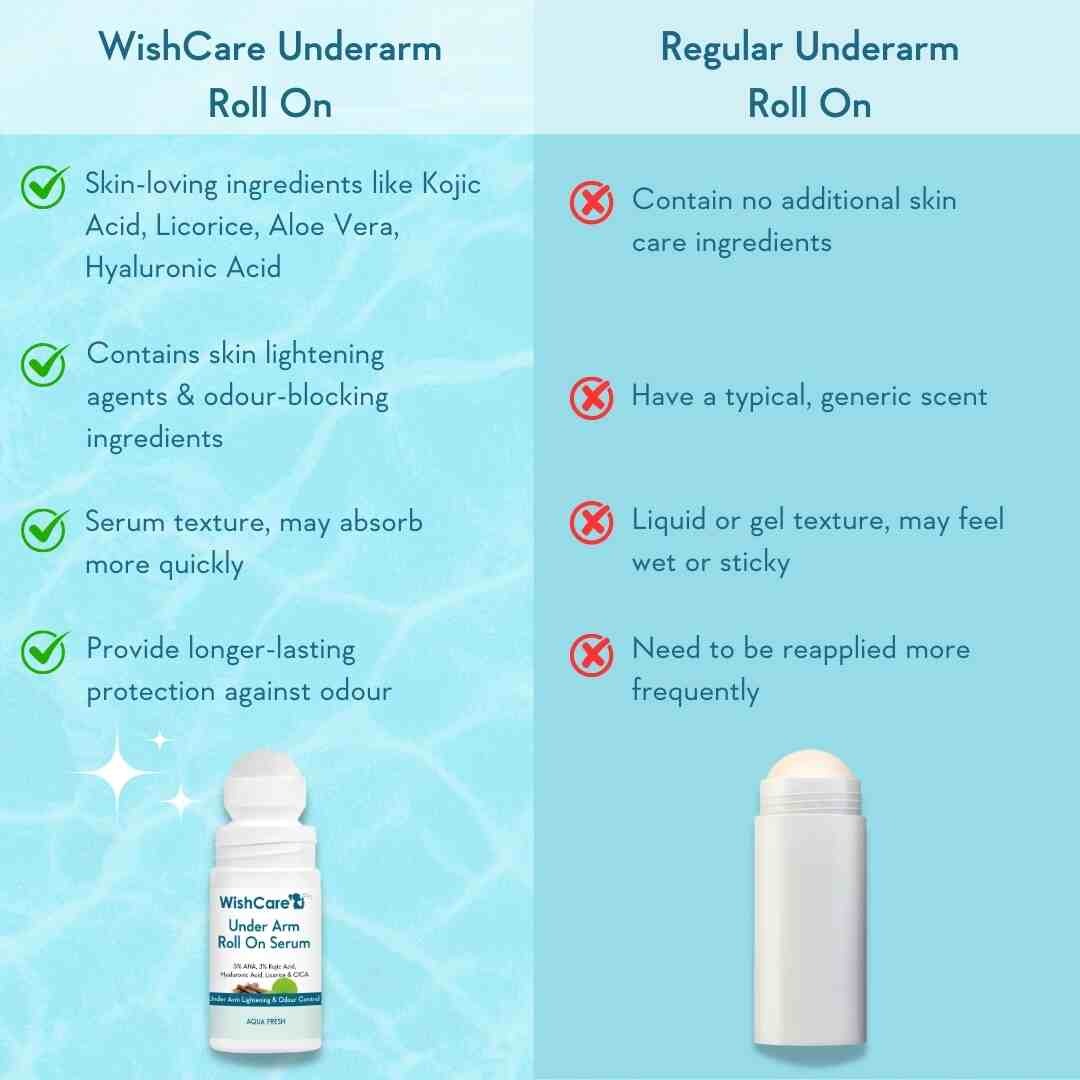 Unlike regular deodorants or roll-ons, WishCare Under Arm Roll On Serum focuses on improving skin health along with controlling odor. It’s alcohol-free, paraben-free, and made with skin-loving ingredients that give long-term results without irritation.